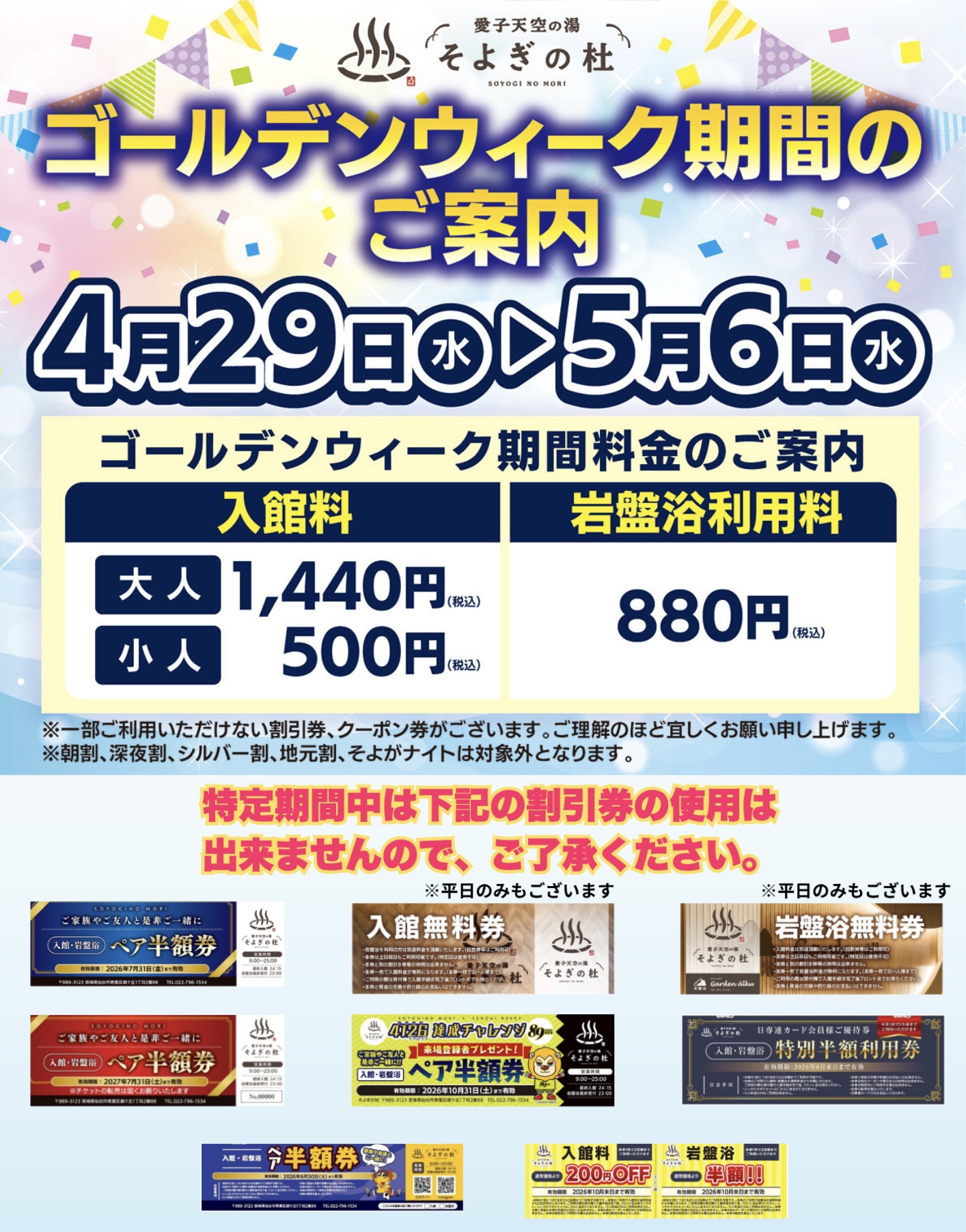 4月29日(水)~5月6日(水)は特定日期間となっており、